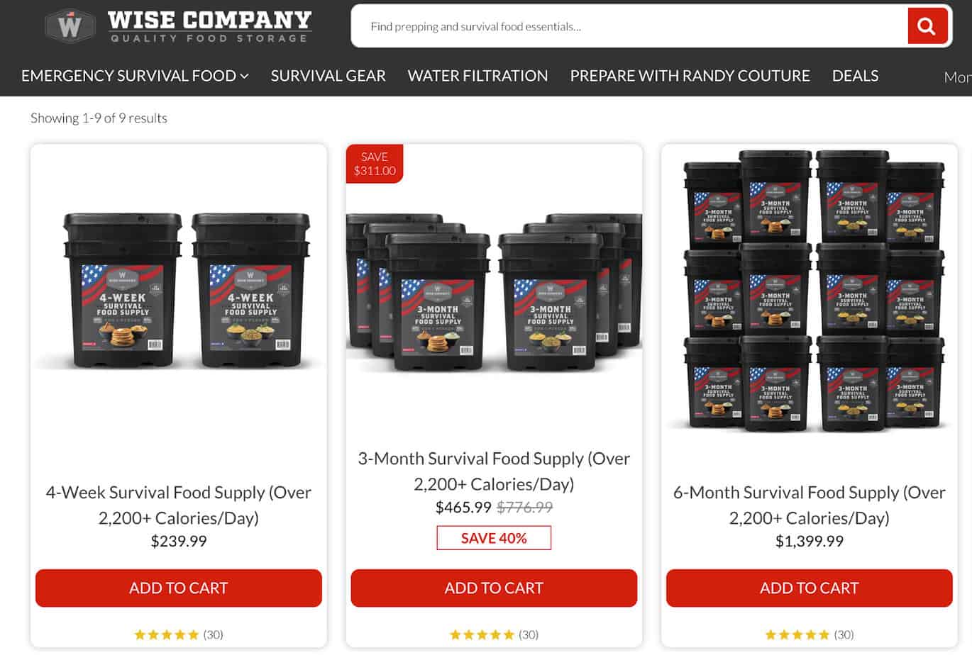 Wise Company specializes in emergency survival food, with kits for specific meals or key ingredients like milk, eggs, and produce. They offer compact packaging meant to be stored for a long time, with a shelf life of up to 25 years. Their kits are suitable for many scenarios, including long-term food supplies to keep you fed for anywhere from 72 hours to a year.