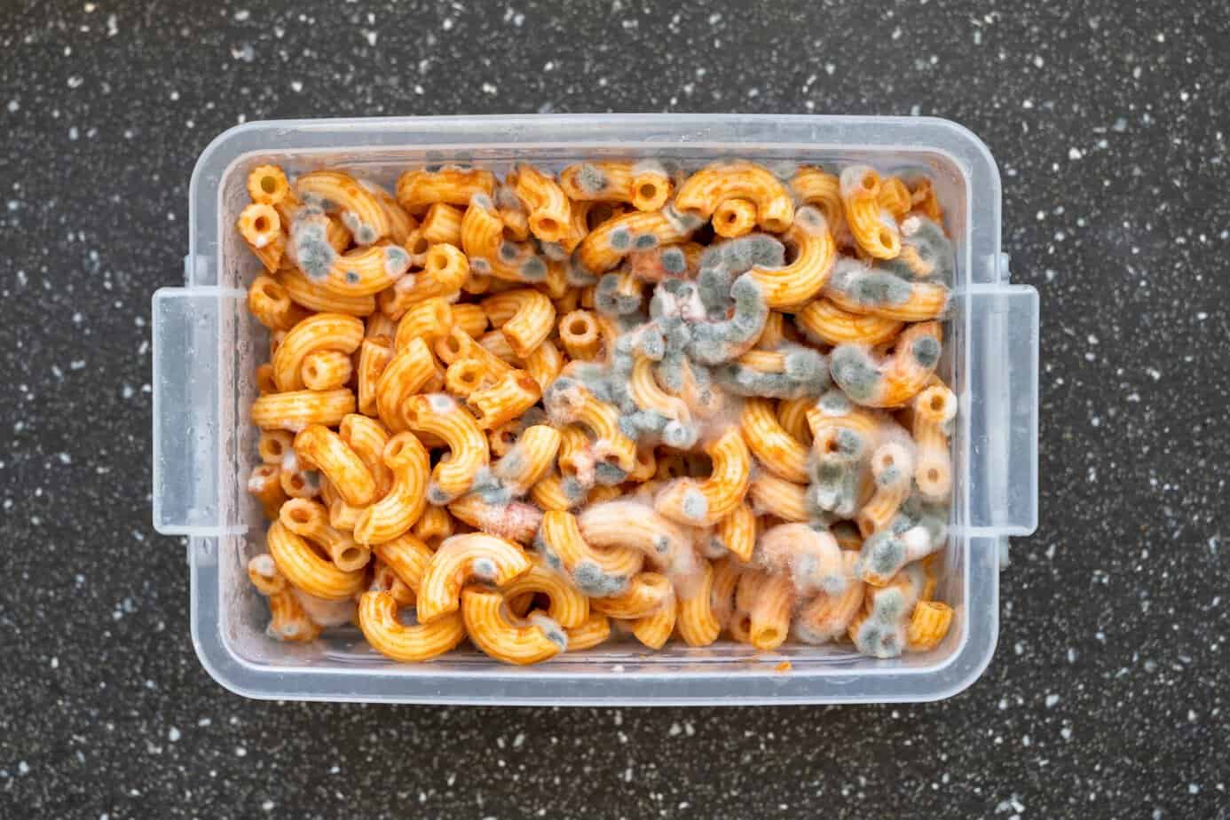 When spaghetti grows mold, you will see white, gray, or colored spots on the dish. Eating pasta with mold spots is still unsafe, even if it only looks discolored in a small area.