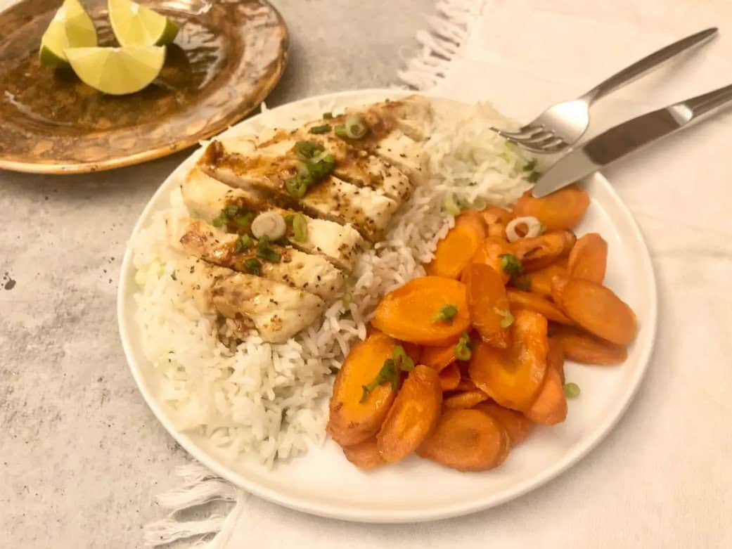 - Sweet Chili Chicken with Scallion Rice: A perfectly balanced dish of sweet and spicy chicken served over fragrant scallion rice and zesty carrots.