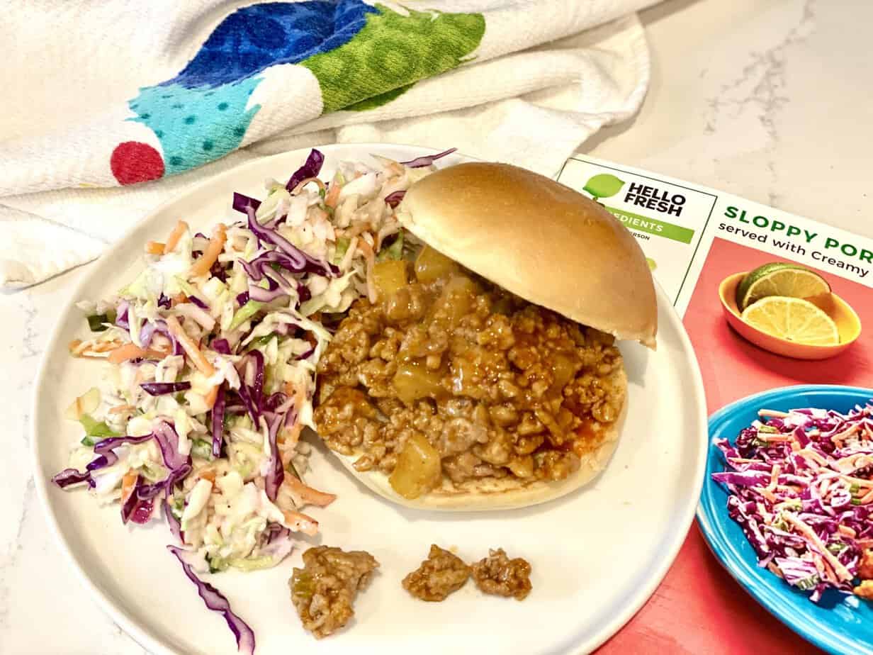 We enjoyed the Sloppy Pork Joes with a Creamy Lime Slaw in our recent box. This dish puts a new twist on the comfort food classic, with BBQ-seasoned ground pork that gets simmered in a flavorful sauce. We appreciated the fresh pineapple and lime juice flavors added to the sloppy joe sauce. The creamy lime slaw added a nice lightness to complement the saucy sandwich, and the potato buns were the perfect vehicle to carry the dish. Overall, it was flavorful and satisfying without being overfilling.