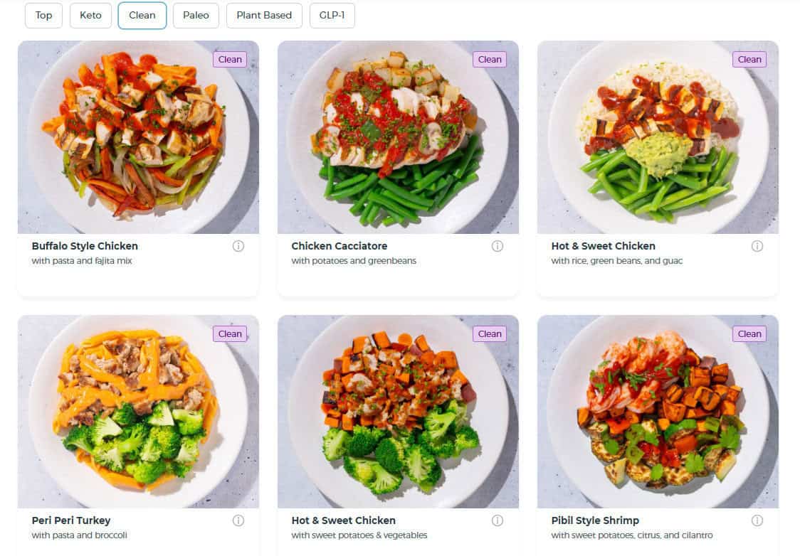 Trifecta offers several plans tailored to specific popular diets. You can choose a plan from Clean, Paleo/Whole30, Keto, Plant-Based, and GLP-1 friendly, or opt for their Meal Prep option to get pre-prepped ingredients rather than prepared meals.