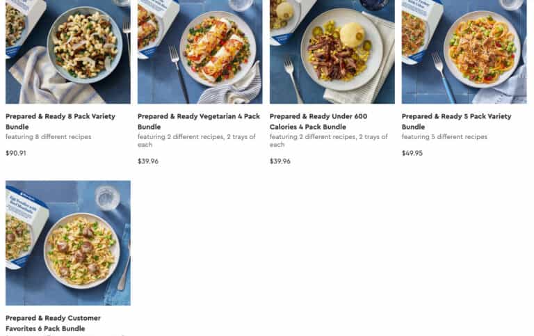 The Blue Apron Market offers many great add-on options to subscribers and meal kit packages for those without a subscription. Choose from meal kits, ready-to-cook meals, and pre-made microwave-ready options. They also offer breakfasts, lunches, tempting appetizers, desserts, a la carte extra proteins, and snacks.
