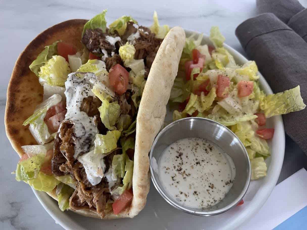 Another household favorite was the Mediterranean Pulled Pork Gyros with Garlic Sauce and salad. The pork came pre-cooked for easier prep time, and the marinated tomatoes felt like an extra special touch. The pork was crisped with authentic ras el hanout spice, wrapped in a warm pita, and drizzled with a wonderful creamy garlic sauce.