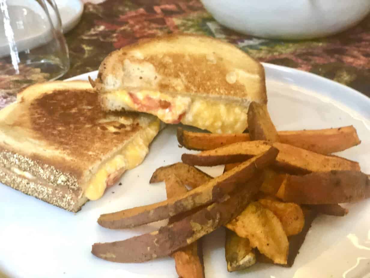 One stand-out dish we enjoyed was the Gooey Bacon and Fig Grilled Cheese with Carrot Fries. We loved the comforting flavors of this hearty meal! Grilled cheese is a classic, and this version adds a nice upscaled flavor with the bacon and fig jam. The veggie fries on the side were a nice compliment.